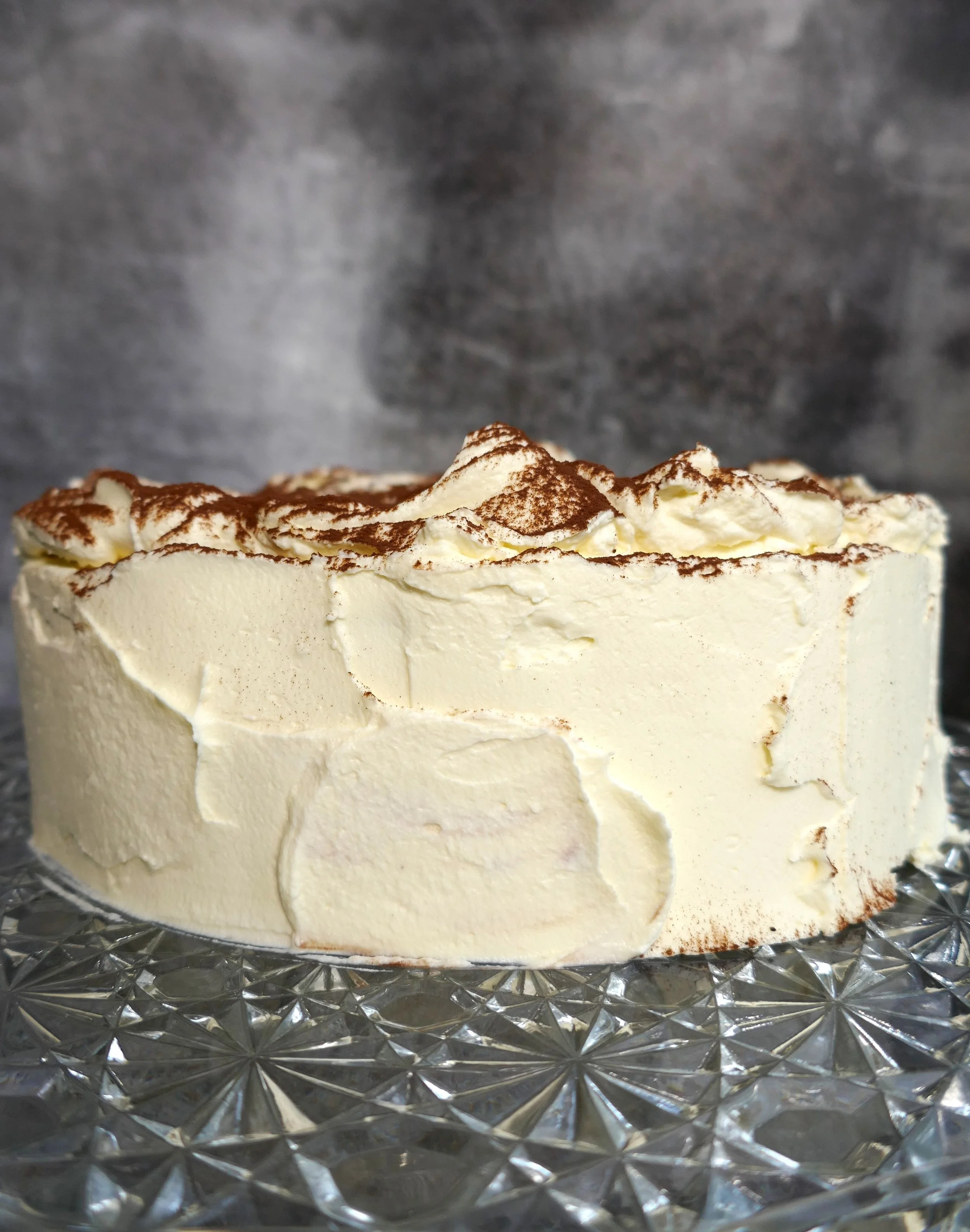 Cream the mascarpone and icing sugar until the sugar had dissolved and the mixture is thick and light. Gradually add the cream and mix until smooth and the mixture holds it’s shape. Set aside in the fridge until needed.