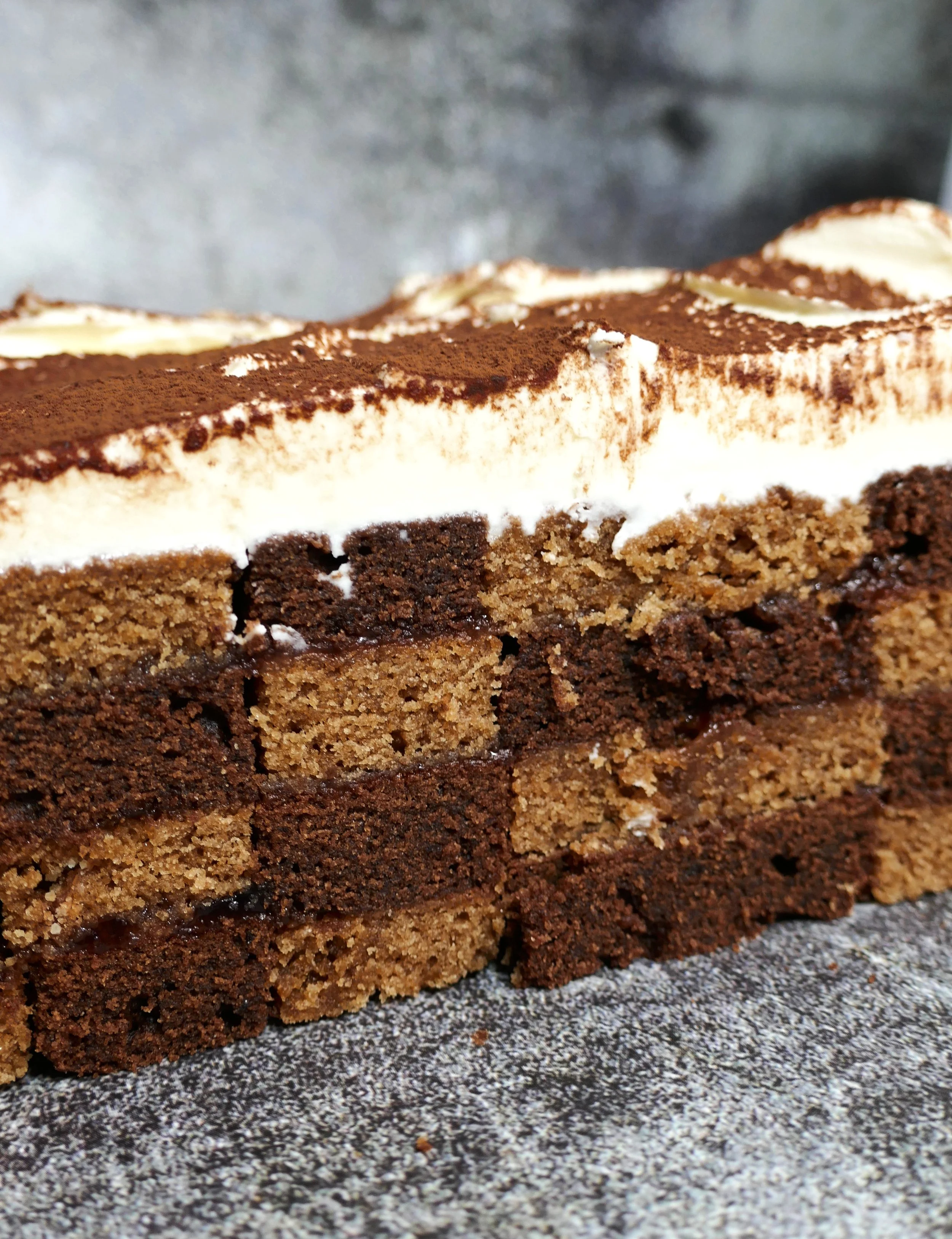 CHOCOLATE AND HAZELNUT CHECKERBOARD CAKE