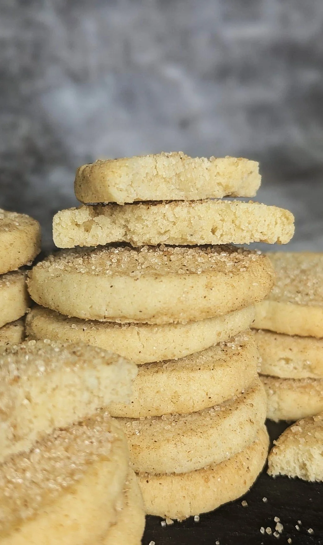 Once chilled, remove the dough from its wrapping and cut the dough into 1cm discus, roll in the spiced sugar, evenly spread the shortbread onto your trays and finish with another sprinkle of sugar before baking until just starting to colour (10-12 minutes).